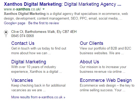 When sitelinks are displayed, not only does your business stand out on the results, but it shows you are a trusted source. It also allows quicker and easier navigation to a relevant area for a potential customer, meaning a higher chance of conversion, as there’s one less barrier.