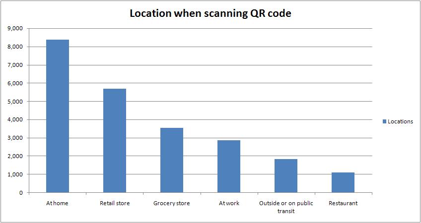 However, when scanning a QR code, most people (8,382) did so at home. Fewest scanned when at a restaurant (1,095).