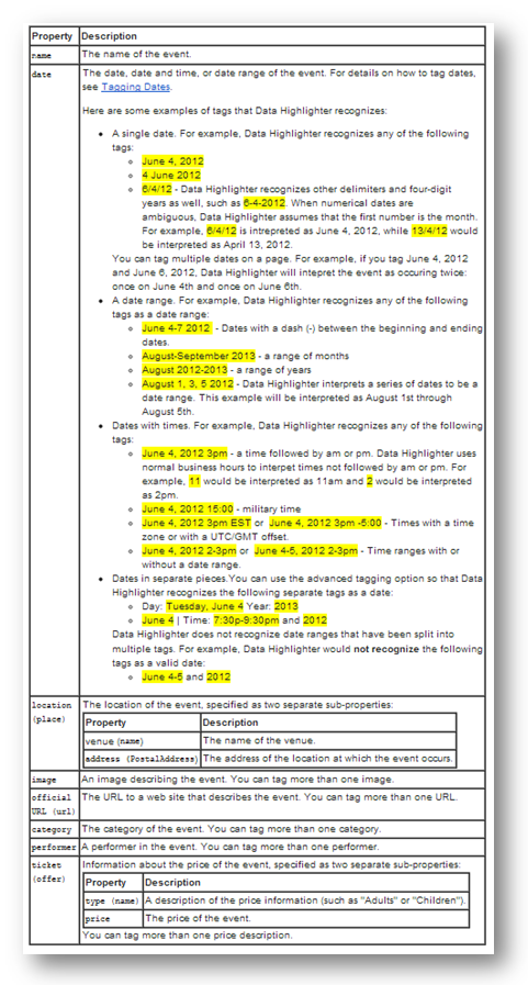 With the introduction of ‘data highlighter’, things have changed. Data highlighter is one of the first webmaster tools that allows you to easily highlight and tag the event-related data on your website without having to touch any HTML code.