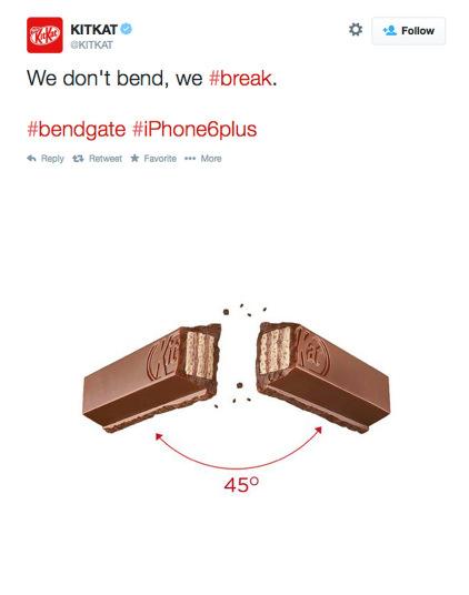 Basically, this means that more marketers will be expected to monitor social networks, and the internet at large, in order to take advantage of current trends. This can help with brand awareness, content virality, and general message spreading. A great example can be seen below; where Kit Kat chimed in on the iPhone 6 “bendgate” debacle. Some would say that has nothing to do with their chocolate treats, but they found a way; and it proved very popular.