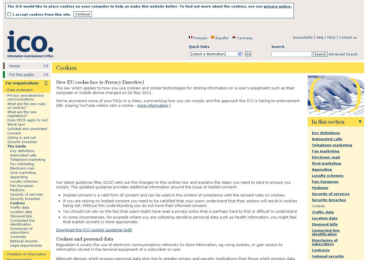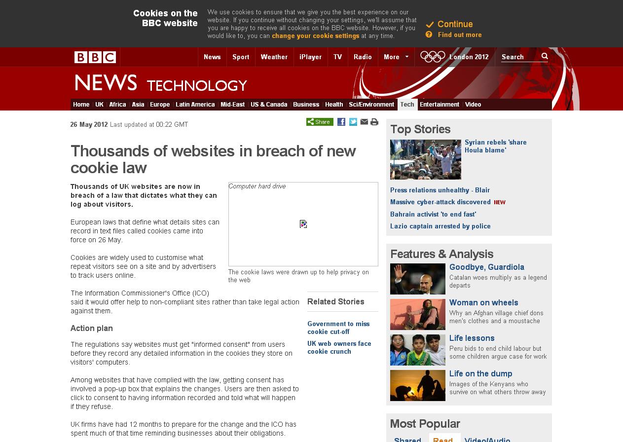 The main difference between the ICO and the BBC’s approach is that in the case of the ICO, you first have to accept the agreement before the website will place cookies on your computer. With the BBC however, you do not have to click continue. If you continue browsing the website and ignore the cookie alert, you have as good as clicked an agree button to have cookies placed on your computer.