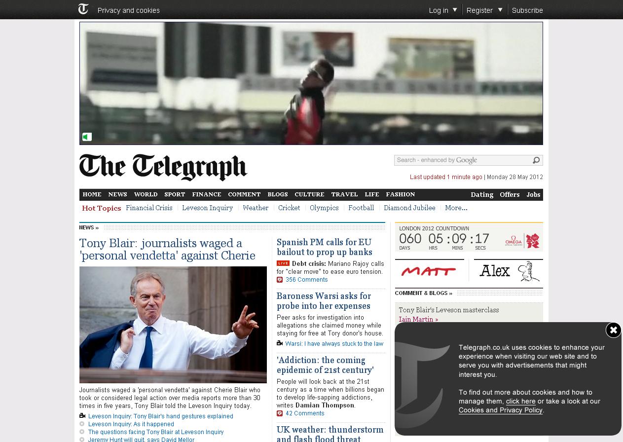 The Telegraph has made their cookies policy very bold. And like the BBC, if you continue to use/browse the website, you will be accepting cookies. However, in the case of the Telegraph, once the message disappears, you can still easily find out about the cookies they will be placing on your browser by clicking on the link in the top left hand corner.